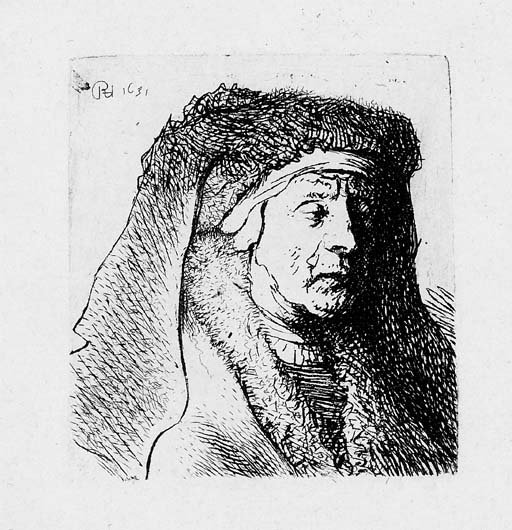 Title: Bust of an old Woman in a furred Cloak and heavy Headdress